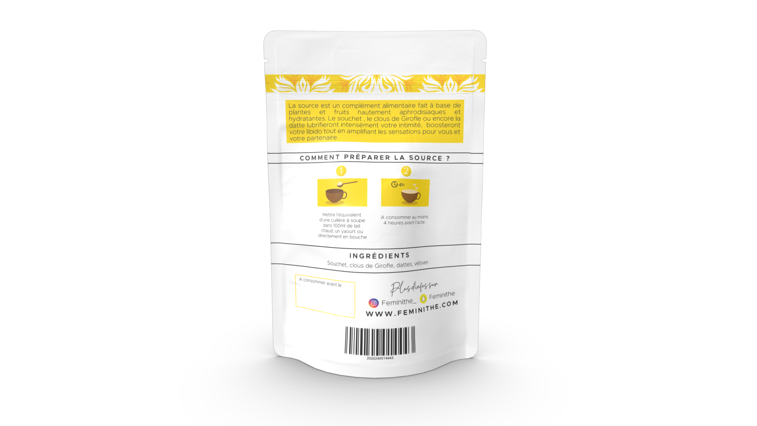 Notre complément alimentaire « La Source » est le produit qu’il vous faut! Il est fait à base de plantes et fruits hautement aphrodisiaques et hydratantes.  Le souchet,  le clous de girofle ou encore la datte, lubrifieront intensément votre intimité, boosteront votre libido tout en amplifiant les sensations pour vous et votre partenaire.